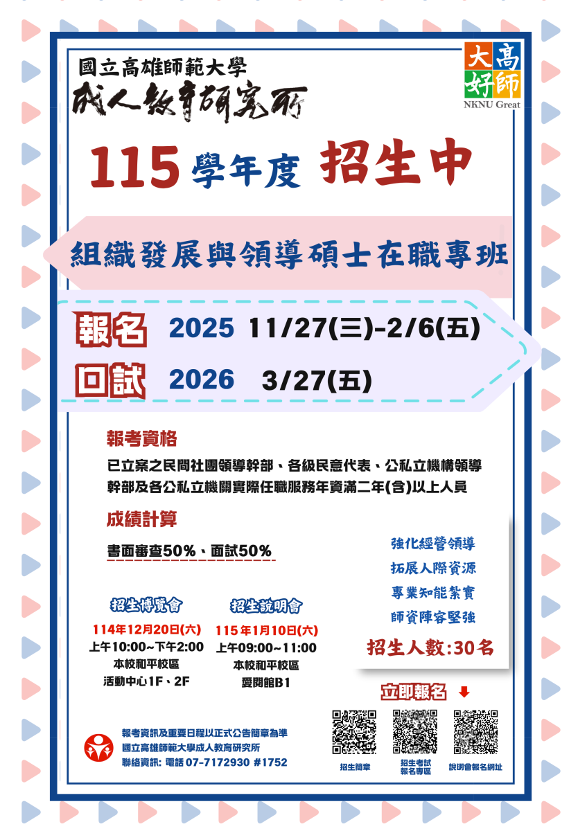【成教所組織發展與領導碩士在職專班招生】
