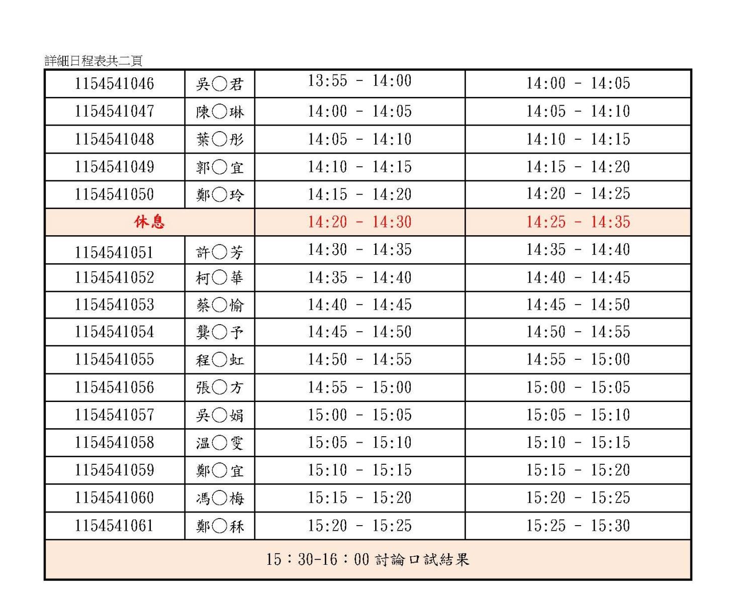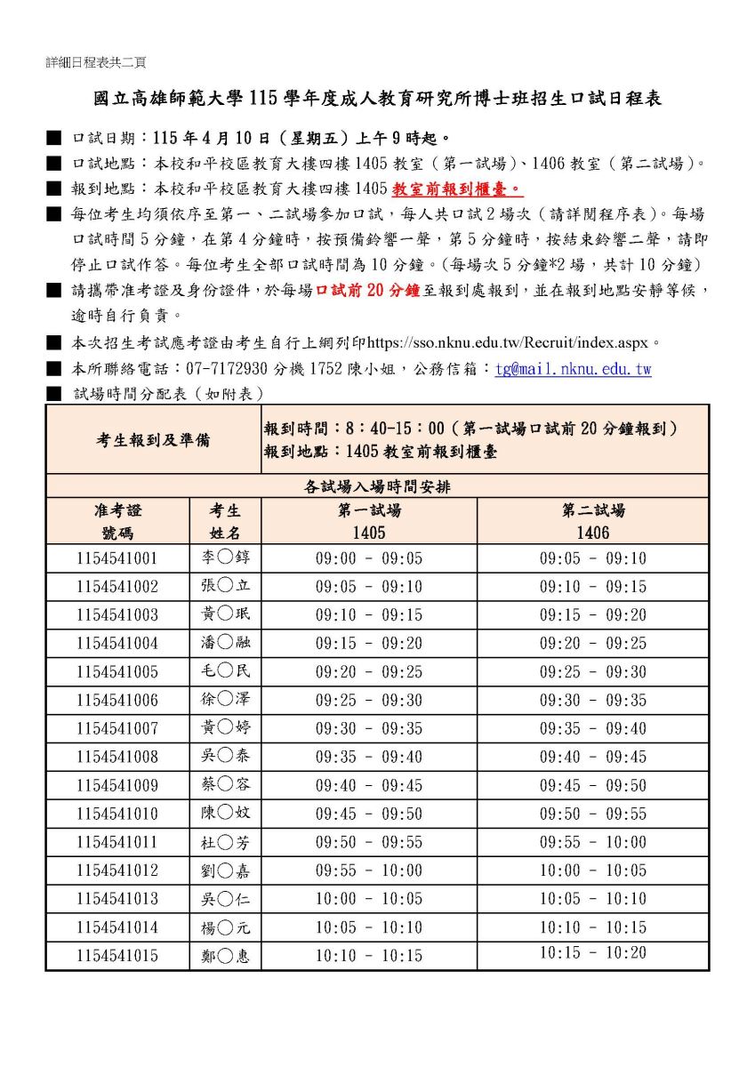 115 學年度成人教育研究所博士班招生口試日程表