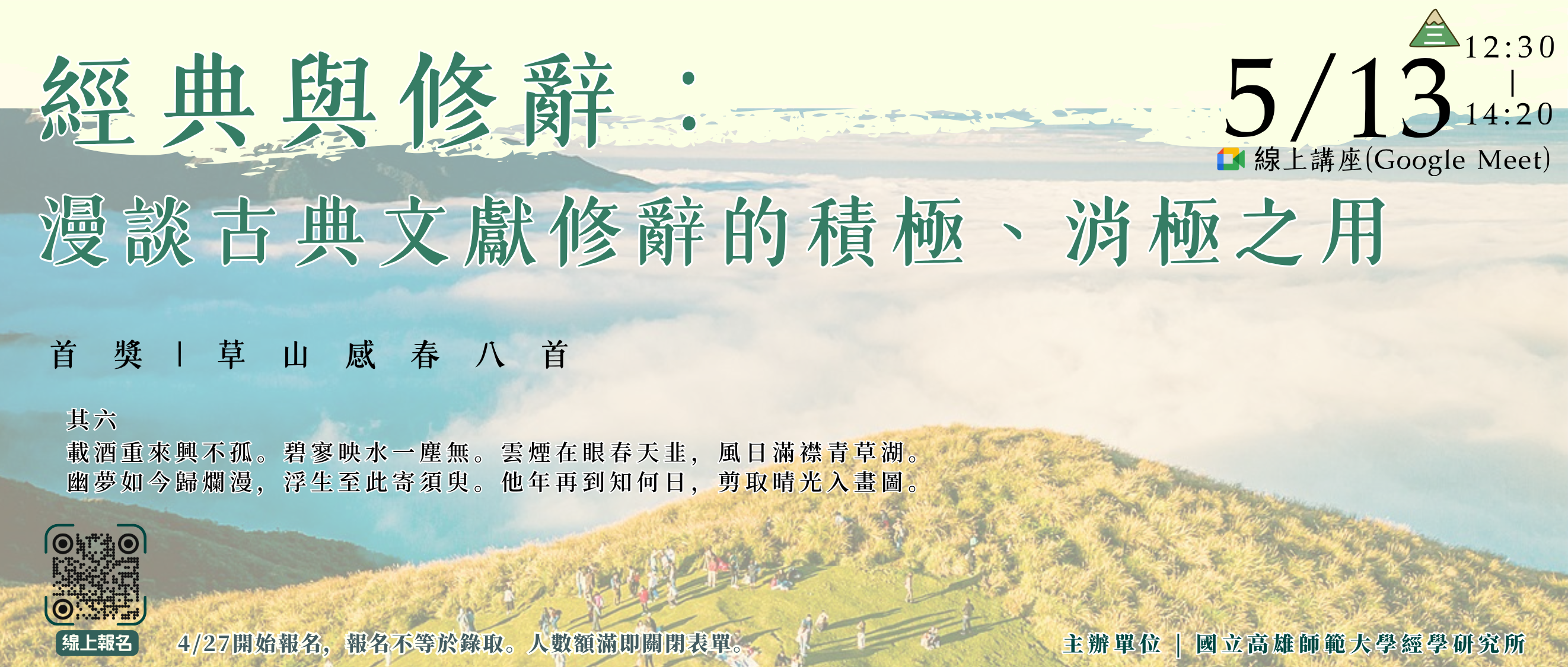 5/13【跨域學術演講】經典與修辭:漫談古典文獻修辭的積極、消極之用