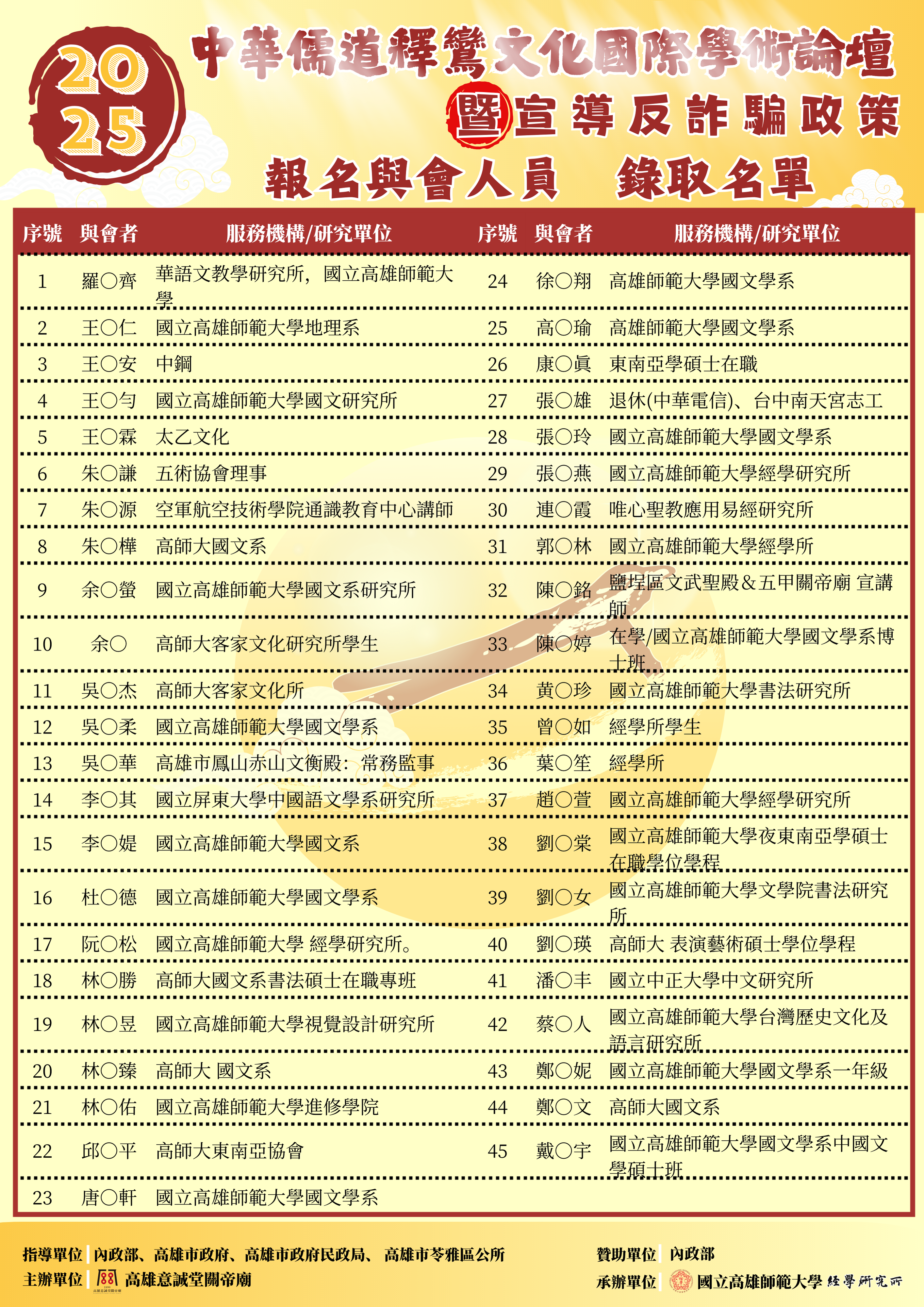 📢2025中華儒道釋鸞文化國際學術論壇暨宣導反詐騙政策【與會錄取名單公告】