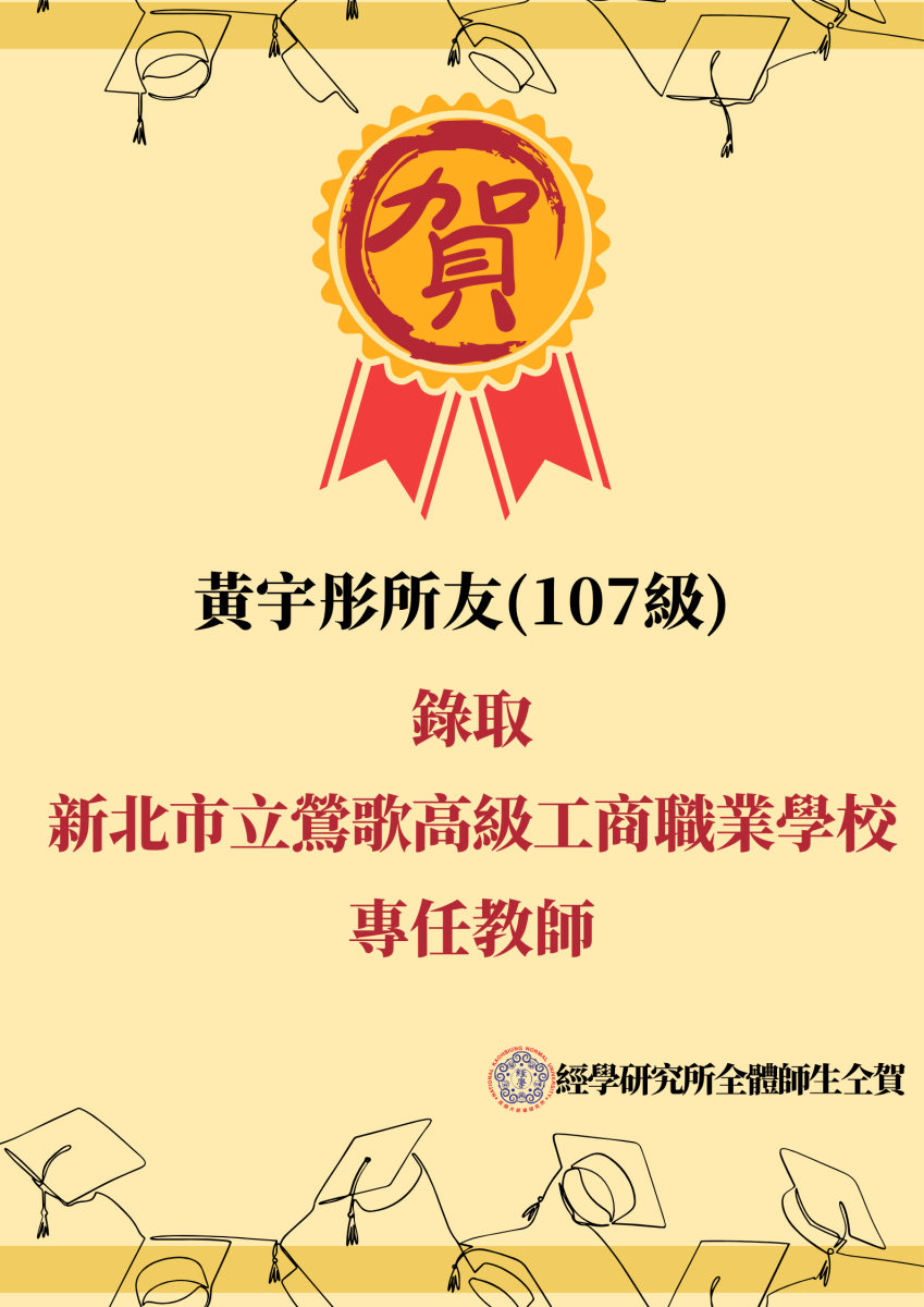 賀!107級黃宇彤所友錄取新北市立鶯歌高級工商職業學校專任教師