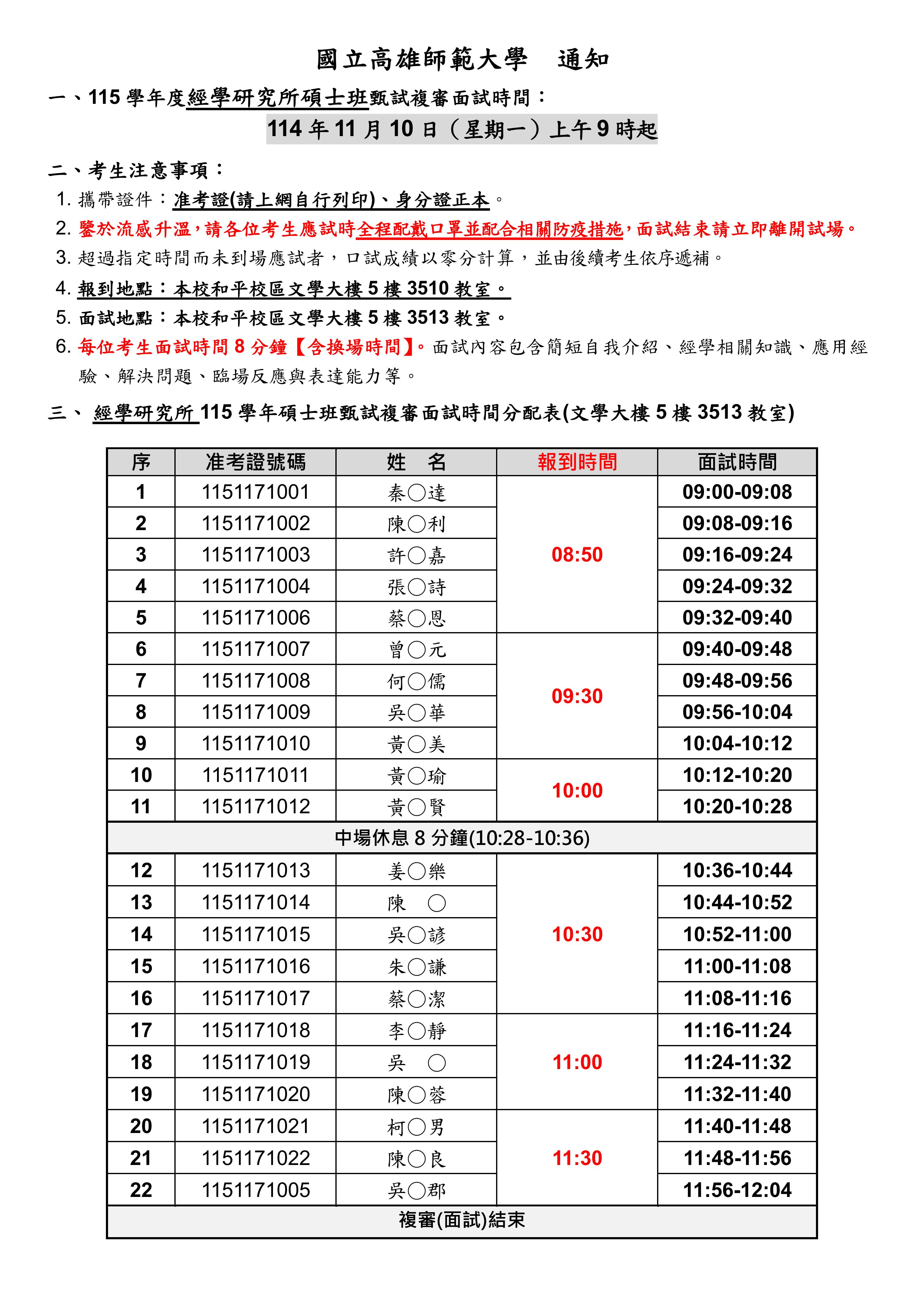 115學年經學研究所碩士甄試面試時間(報名系統公告版_修正報到地點).pdf (150 KB )