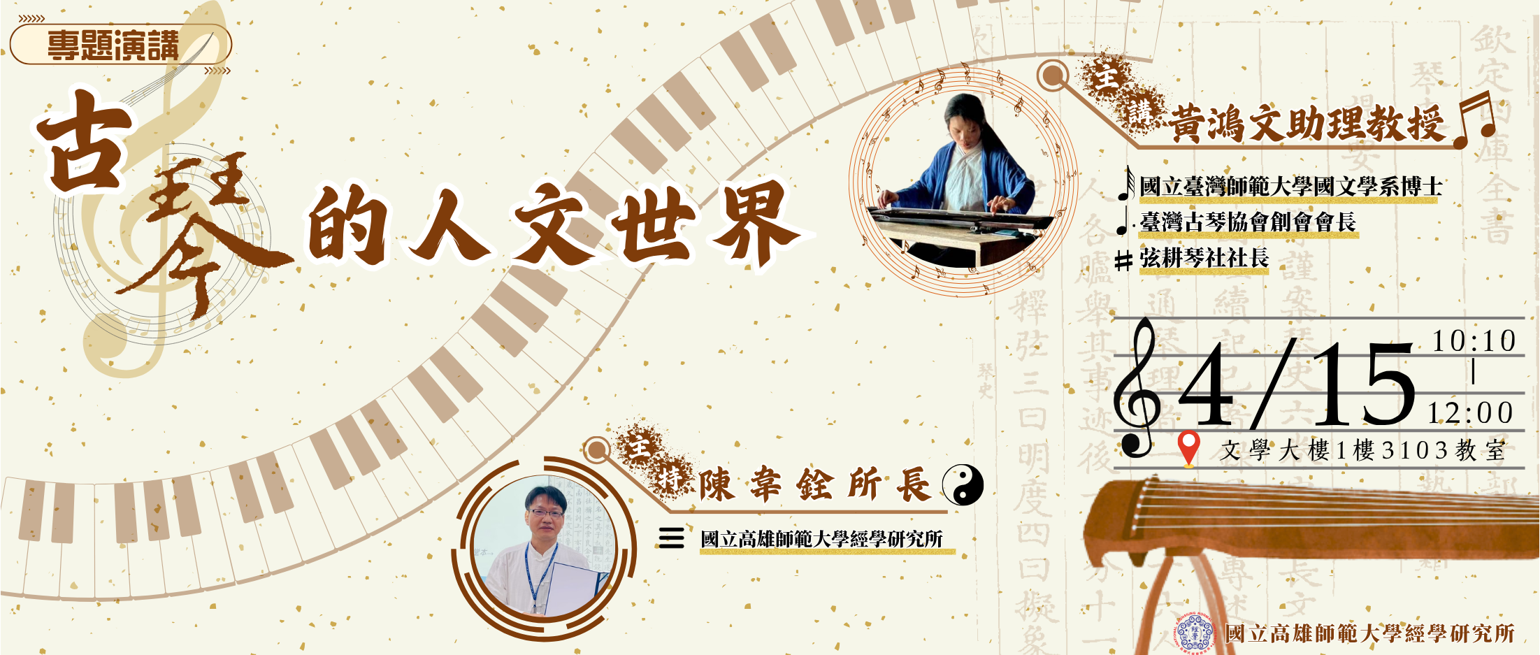 📌國立臺灣師範大學國文學系博士 ・臺灣古琴協會創會會長 ・弦耕琴社社長