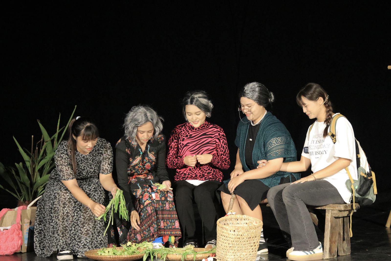 《#誰》畢業創作展演的核心在於「尋根之路」,涵蓋祭典、歌謠、諺語、族語語法、傳統工藝等內容,