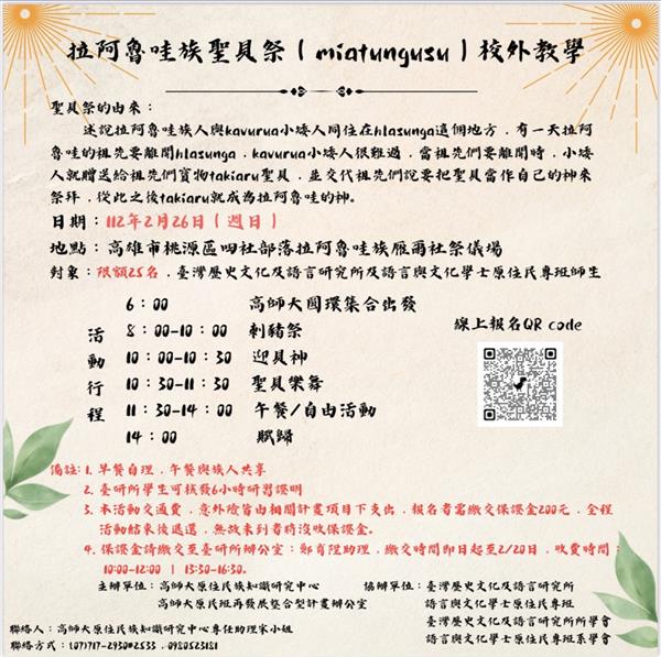 114學年度語言與文化學士原住民專班招生考試 即將開始囉!